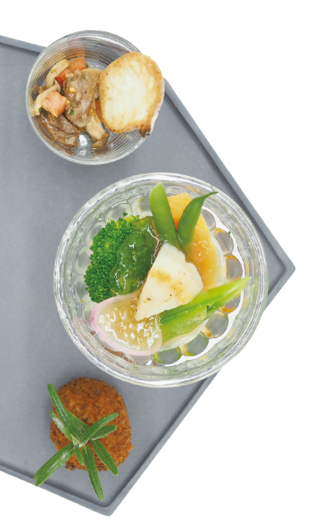 季節野菜とカリフラワーのムース、鶏のレバーパテ、